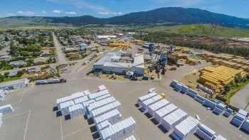 (Lumber Trucks enter through Woodlands on Houston Street)